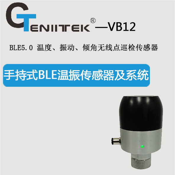 主要特点:Geniitek-VB12手持式蓝牙温振复合传感器是一款小型的蓝牙无线振动检测传感器,具备温度、振动、倾角等检测功能。内置智能FFT频谱分析算法,既能采集加速度原始数据,又能采集振动烈度时域和频域波形数据;配套APP和云端软件,方便用户采集振动数据,并上传振动数据到云端;采用可充电锂电池供电,有线供电和充电锂电池供电无缝衔接;外壳采用高强度合金和工程塑料,适应高温强振的恶劣工业现场。搭配三防手持设备和我司专业APP实现数据采集、传输、存储和分析,代替传统振动点检设备。
